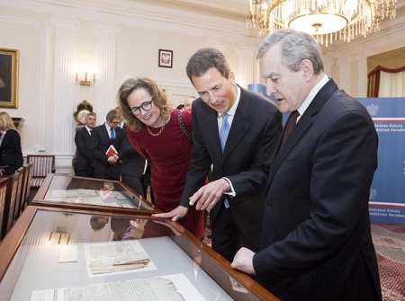 Anlässlich des Besuchs des Erbprinzenpaars in Polen konnten Archivalien des fürstlichen Hausarchivs und der Stadt Danzig gegenseitig zurückgeführt werden. Im Jahr 1944 hatten sowjetische Soldaten Teile des fürstlichen Hausarchivs aus der Burg Liechtenstein in Maria Enzersdorf in Lastwagen weggeführt. Diese Archivalien galten daraufhin mehrere Jahrzehnte lang als verschollen. Im Jahr 1993 wurde ein Teil der Archivalien des Hausarchivs in Moskau im Zentrum zur Aufbewahrung historischer dokumentarischer Sammlungen gefunden und konnten ein paar Jahre später nach Liechtenstein zurück verbracht werden. Darin befand sich ein Fremdbestand, dessen Inhalt auf die Geschichte der Stadt Danzig verweist.
