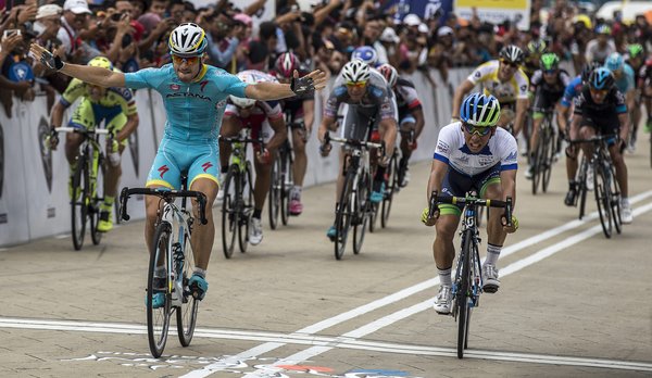 Der italienische Sprinterstar Andrea Guardini hat die erste Etappe der 1. Abu Dhabi Tour gewonnen und seinem erfolgreichen Astana-Team einen weiteren Sieg im ausgehenden Radsportjahr beschert. Er entschied die Auftaktetappe über 158 km von Quasr Al Sarab nach Madinat Zayed im Massensprint vor dem Belgier Tom Boonen und seinem Landsmann Daniele Bennati für sich.