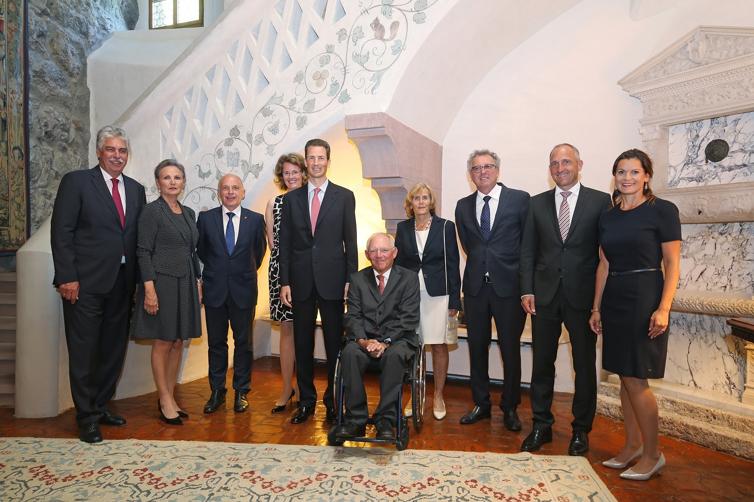 Im Rahmen des alljährlich stattfindenden Treffens der deutschsprachigen Finanzminister empfing Erbprinz Alois die Finanzminister von Deutschland, der Schweiz, Österreich, Luxemburg und Liechtenstein, das durch Regierungschef Adrian Hasler vertreten ist, zu einem Gedankenaustausch auf Schloss Vaduz. Im Anschluss führte Michael Hilti die Finanzminister durch das neue Innovationszentrum der Hilti AG in Schaan.