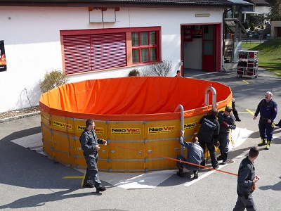 Unter der Leitung von Kurskommandant Roland Biedermann aus Ruggell erweitern die Teilnehmer an diesem Kurs ihr Können beim Wassertransport mit grossen Mitteln.