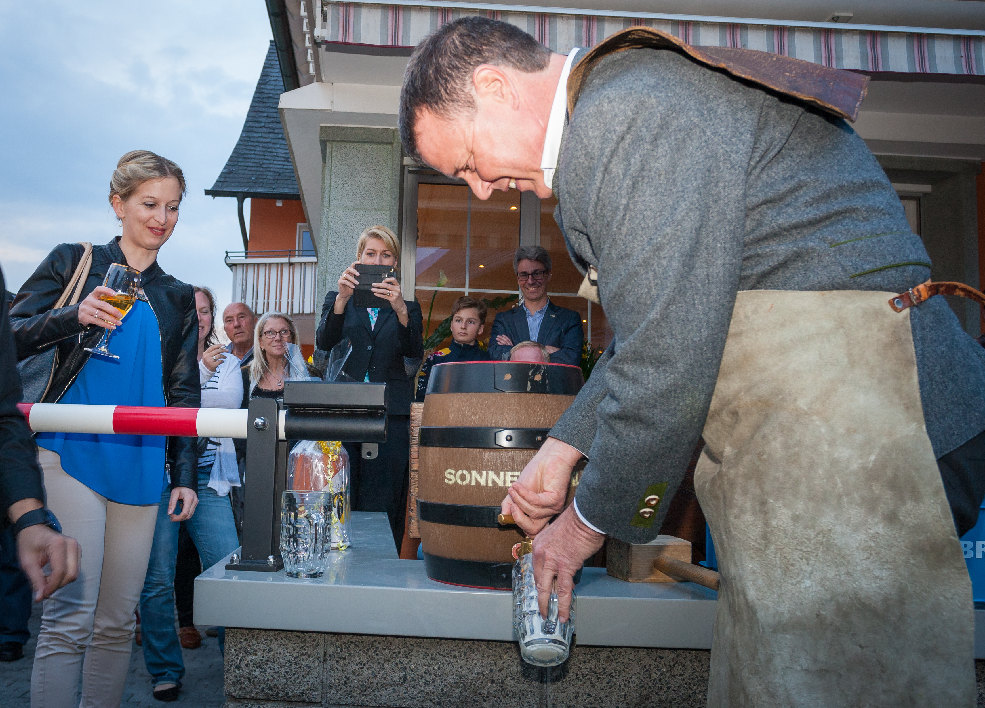 Vorsteher Freddy Kaiser überbrachte samt Gemeinderat die besten Glückwünsche zur Neueröffnung und liess den Musikverein Konkordia Mauren mit einem musikalischen Ständchen die Eröffnung untermalen. Anschliessend wurde durch Vorsteher Kaiser «angezapft».