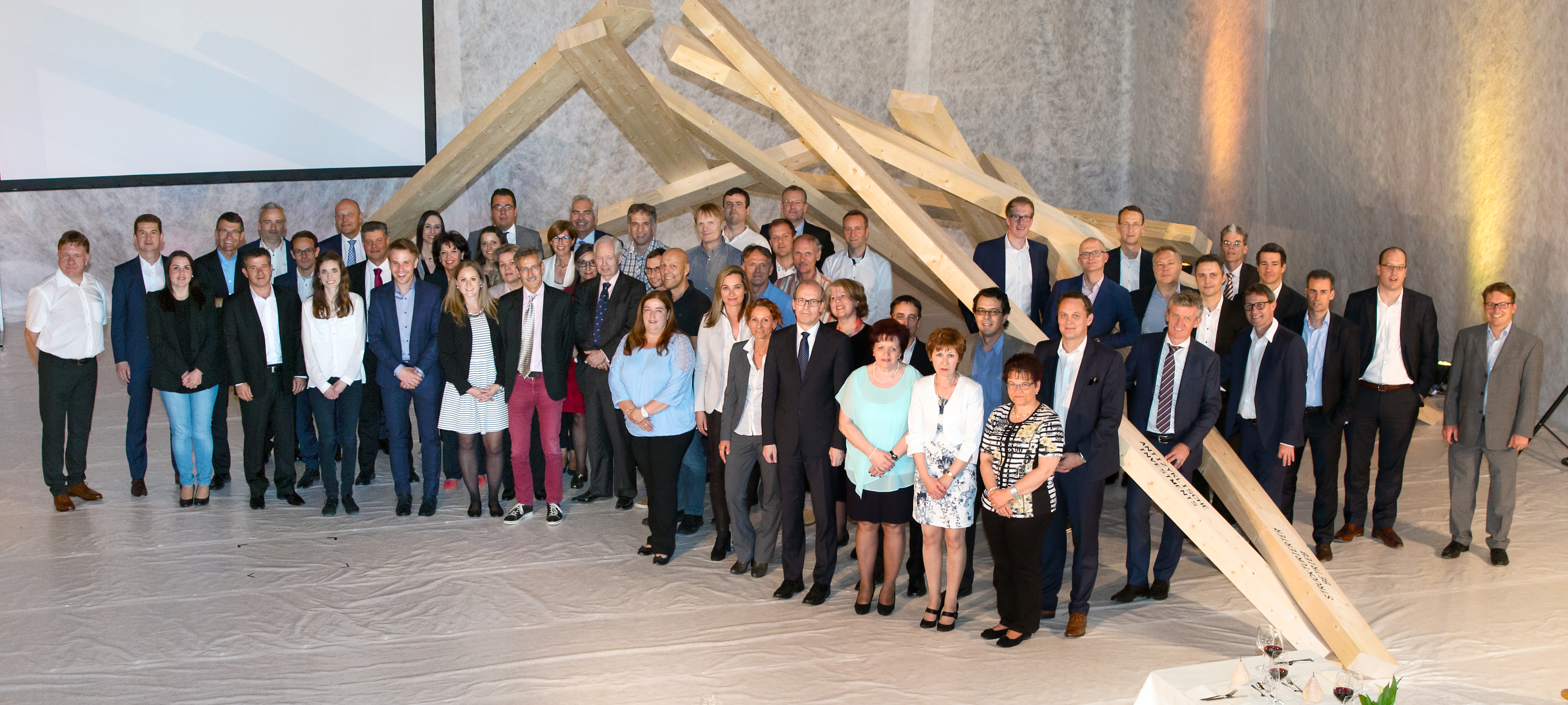 «Zimmermann und Banker – zwei Berufe, die wohl nicht unterschiedlicher sein könnten. Dennoch stehen bei uns beiden Kunde und Mitarbeiter im Fokus. Ein ausgezeichneter Ort, um unsere Jubilare zu ehren», sagte S.D. Prinz Philipp von und zu Liechten- stein nach der Führung durch den innovativen Betrieb.
