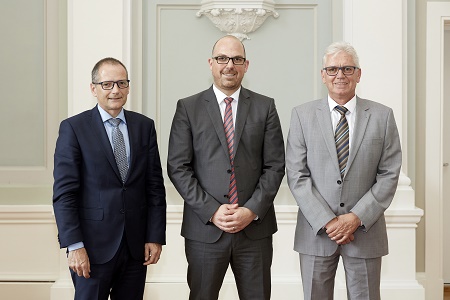 Wirtschaftsminister Daniel Risch sowie Innenministerin Dominique Gantenbein würdigten die Verdienste von Fredy Bucher als Zollkreisdirektor Schaffhausen.