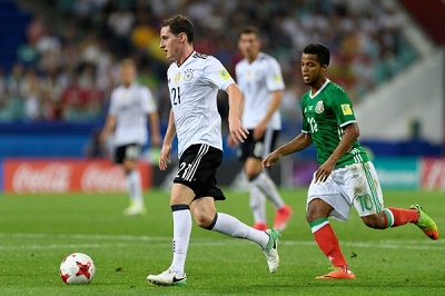 Vorne am Ball Sebastian Rudy (GER) gegen Giovani Dos Santos (Mexico) im Confed Cup 2017, Halbfinale: Deutschland gegen Mexico am29.6.2017 in Sotschi. Endstand 4:1. Foto: Picture Alliance, Marvin Ibo Guengoer.