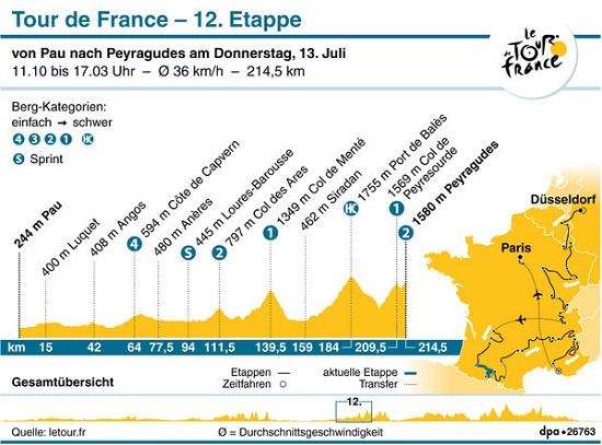 12. Etappe, Pau – Peyragudes, 214,5 Km