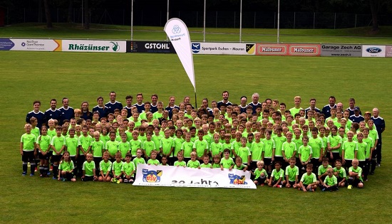 Zu den absoluten Highlights der Woche gehörte am Mittwoch auch der Besuch des FC Vaduz-Profis Maxi Göppel, der sich für ein Interview zur Verfügung stellte und gerne die vielen Autogrammwünsche erfüllte. Leider wurde das Wetter täglich etwas miserabler, Kälte und Regen zogen in den Sportpark und so musste der Veranstalter am Freitagvormittag auf sein Alternativ-Programm umschalten. Danach durften sich die Kids aus Anlass des 20-Jahr-Jubiläums an einem Ballonwettbewerb beteiligen. Sem Sieger winkt eine Gratisteilnahme beim nächsten Camp. Schliesslich aber konnte das wirklich tolle Programms mit dem Spiel-und Spassnachmittag mit den Eltern, Grosseltern, Paten und Tanten sowie die Finalspiele der „Fussball-EM“ den geplanten Abschluss finden.