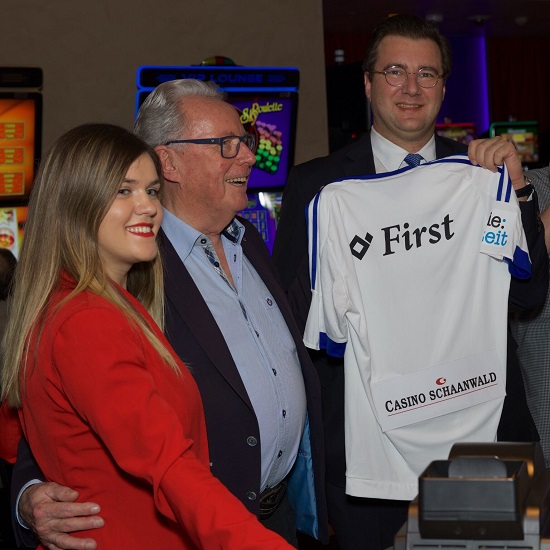 Erstligist USV Eschen/Mauren hat mit dem vor kurzem eröffneten Casino Schaanwald einen neuen Sponsor gefunden. Bei der Präsentation der für die Rückrunde neu vom USV verpflichteten Spieler und Trainer machte die Abordnung einen Besuch im Casino.