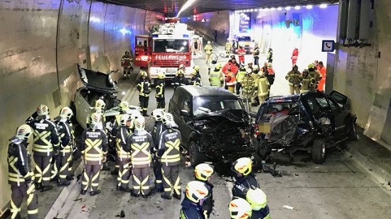 Am Sonntag Nachmittag ereignete sich im Brandbergtunnel ein schwerer Verkehrsunfall, der nach ersten Informationen der Polizei mindestens zehn, davon vier Schwerverletzte, gefordert hat.