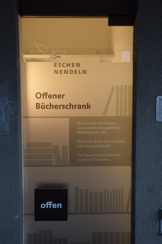 Die so entstandene kleine Selbstbedienungs-Bibliothek wird zusätzlich von den Bibliothekarinnen der Schul- und Gemeindebibliothek Eschen betreut. Die Bibliothek verfügt selber über viele interessante Bücher, welche zwar aus dem Bestand aussortiert wurden, aber noch aktuell sind. So erhalten auch diese Bücher eine neue Chance, nochmals gelesen zu werden, was nicht zuletzt auch aus ökologischer Sicht Sinn macht.