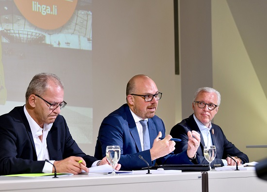 Foto: Gerhard Häring, Verwaltungsratspräsident LIEmobil, Regierungschef-Stellvertreter Daniel Risch, Georges Lüchinger, LIHGA-Leitung. Quelle: IKR