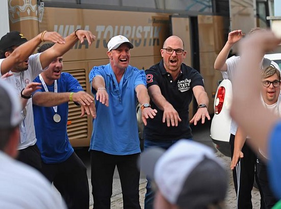 Regierungschef-Stellvertreter Daniel Risch inmitten der heimgekehrten Special Olympics. pd