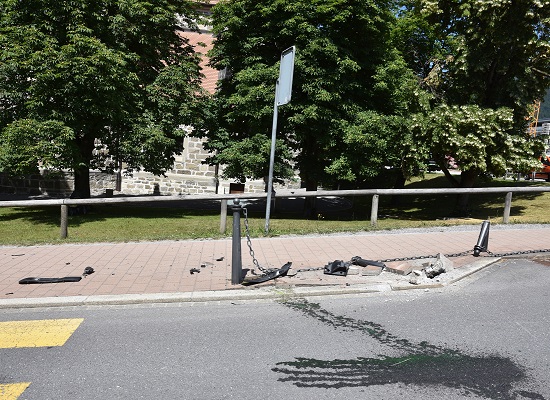 In Schaan fuhr ein Lieferwagen um 14:50 Uhr auf der Fürst-Johannes-Strasse talwärts in westliche Richtung, als er aufgrund mangelnder Aufmerksamkeit eine Verengung der Strasse übersah. In der Folge kollidierte er mit vier Eisenpfosten. An diesen sowie am Fahrzeug entstand Sachschaden.