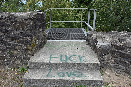 lpfl – In Schellenberg kam es bei der Burgruine zu einer schweren Sachbeschädigung durch eine unbekannte Täterschaft. In einem nicht bekannten Zeitraum wurde bei der unter Denkmalschutz stehenden Burgruine eine Mauer sowie ein Abfalleimer mit verschiedenen Schriftzügen in grüner Farbe besprayt. Es entstand ein Sachschaden von mehreren hundert Franken.