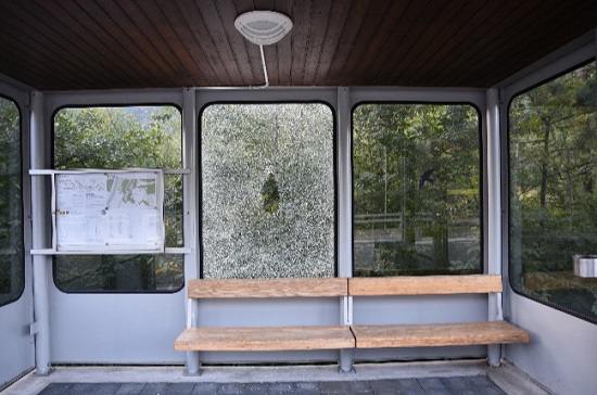 lpfl – Erneute Sachbeschädigung an einer Haltestelle. In der Zeit zwischen Freitag 27.07.2018 – Samstag 28.08.2017, 17 Uhr, wurde in Triesen, Bushaltestelle Säga, die hintere Glasscheibe, eingeschlagen und beschädigt.