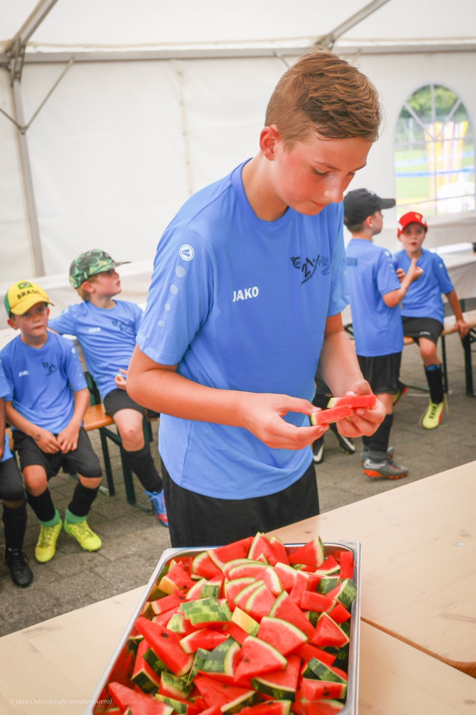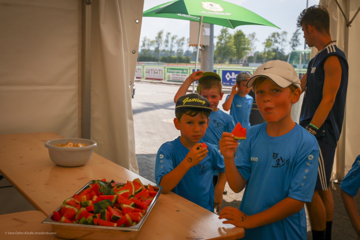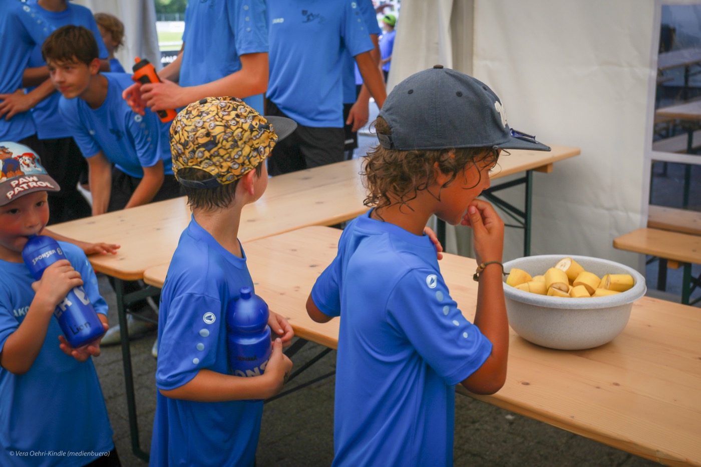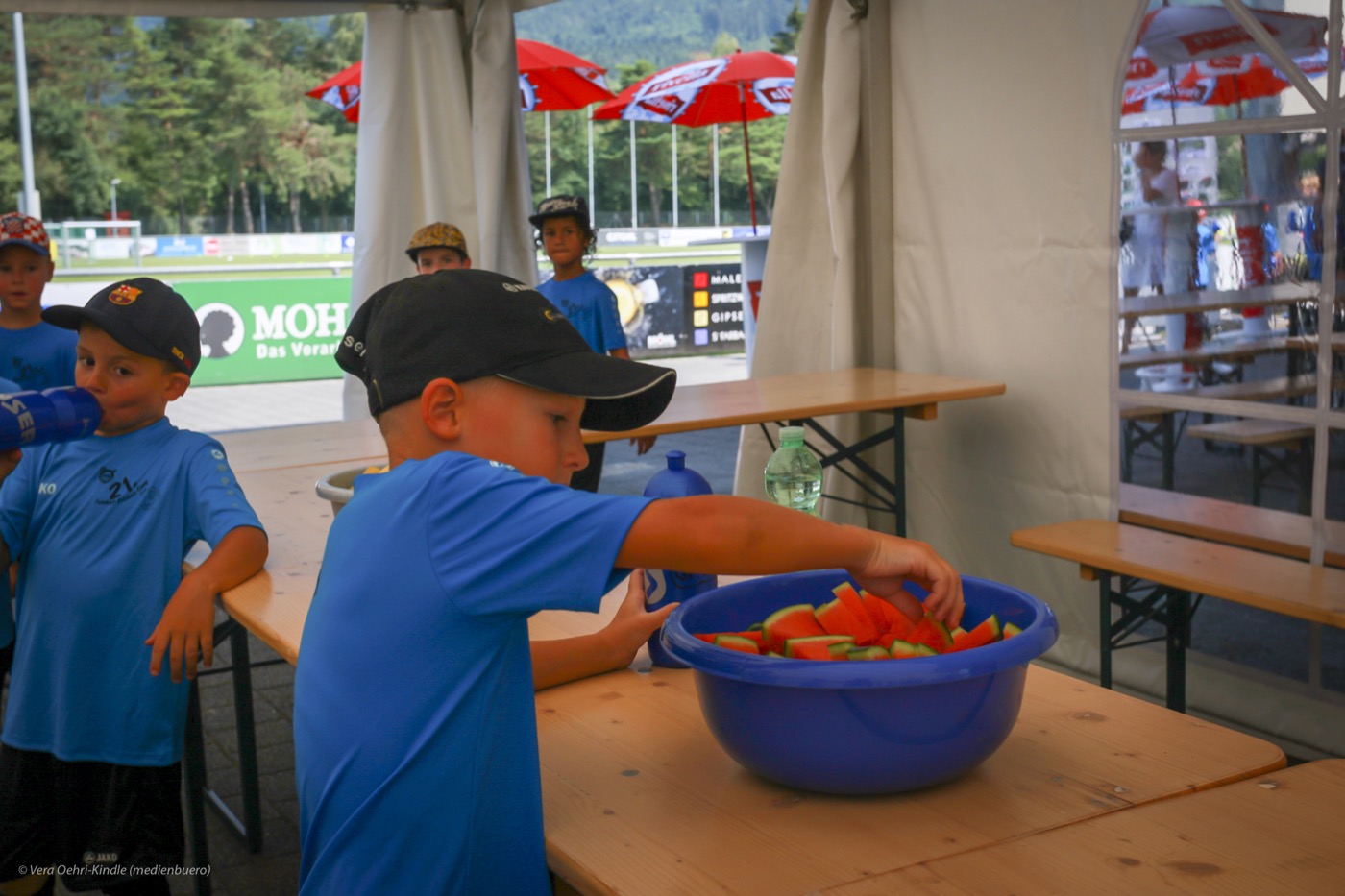 Am Montagnachmittag konnte Moderator Martin Böckle bei heissen Temperaturen 150 erwartungsfrohe Kinder, 19 Trainer und Co-Trainer sowie die Verantwortlichen und Helfer für die Organisation und die Verpflegung zum 21. Fussballcamp des USV Eschen/Mauren begrüssen. Am ersten Tag standen das gegenseitige Kennenlernen sowie lockere Spiele auf dem Programm. Von heute bis Freitag gibt es ein abwechslungsreiches polysportives Programm, das bereits am Dienstagvormittag mit der vielseitigen «thyssenkrupp Presta Challenge» startet. Am Mittwoch und Donnerstag dürfen sich die Kinder auf den Besuch von Nationalspielern freuen. Am Freitag findet das Camp seinen Abschluss mit dem Spiel und-Spass-Nachmittag, zu dem auch Eltern, Grosseltern und Paten eingeladen sind. Dazu gehören natürlich ganz zum Schluss auch die drei Finalspiele der «Fussball-WM» und die anschliessende Preisverteilung. Der USV Eschen/Mauren freut sich auf zahlreiche Zuschauer während der Woche und speziell am Freitagnachmittag.