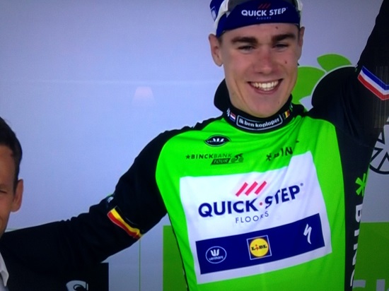 Das erst 21jährige Talent Fabio Jakobsen (Quick-Step Floors) gewinnt die Auftaktetappe zur 14. BinckBank Tour und den insgesamt 54. Saisonsieg für das erfolgreiche Quick-Step-Team. Jakobsen setzte sich am Montag über 177.3 kmm von Heerenveen nach Bolsward in einem wilden Sprint knapp vor dem deutschen Sprinterkönig Marcel Kittel (Kathusha-Alpecin) und dem Australier Caleb Ewan (Mitchelton-Scott) durch.