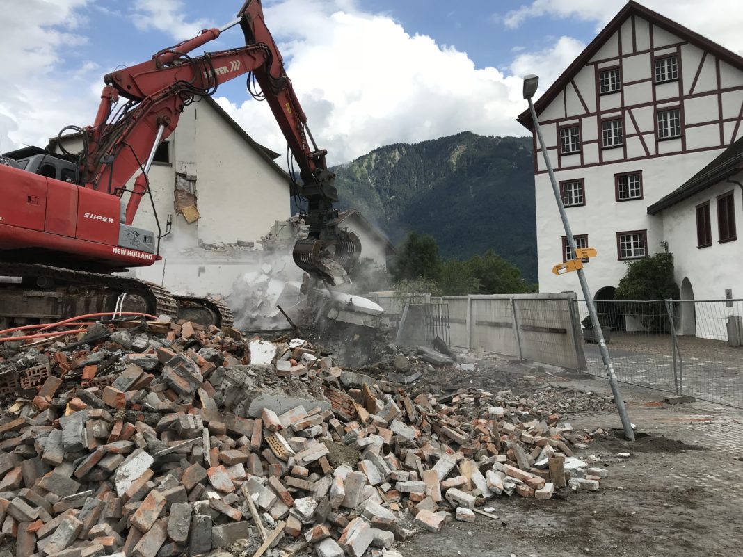 Der Abbruch des traditionsreichen Gasthauses «Kreuz» im Zentrum von Eschen ist heute fortgesetzt worden. Nun steht das «Kreuz» nicht mehr.