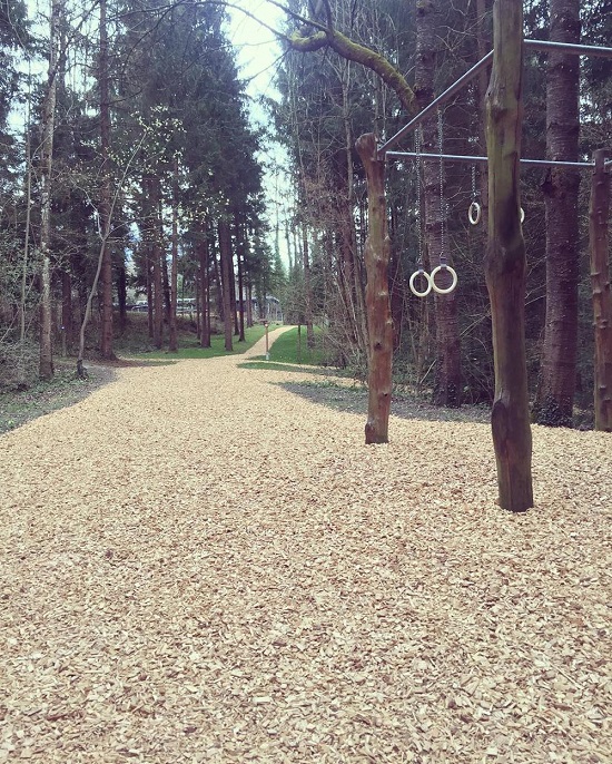 Der Vitaparcours Schellenberg liegt zudem in einer idyllischen Landschaft, die Wege führen durch eine herrliche Waldgegend. Es gibt viele Geräte zum Üben und man kommt ganz schön ins Schwitzen. Nicht nur in dieser Affenhitze. Trotzdem spendet der Wald reichlich Schatten.