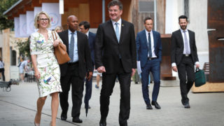 Gang vom Kunstmuseum zum Regierungsgebäude: Regierungsrätin Aurelia Frick und Miroslav Lajčák, Präsident der UNO-Generalversammlung. Quelle: IKR