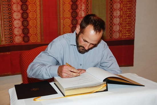 Nach den Ansprachen durften die Lehrabgänger der Reihe nach ins Goldene Buch eintragen. Den Anfang machte Julia Helena Hoop mit der Bestnote 5,7.