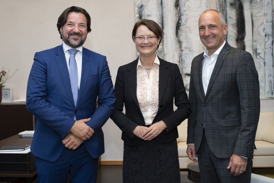 Im Rahmen dieses zweitägigen Treffens statteten die ESA-Präsidentin und das liechtensteinische Kollegiumsmitglied Regierungschef Adrian Hasler und Regierungschef-Stellvertreter Daniel Risch Höflichkeitsbesuche im Regierungsgebäude ab.