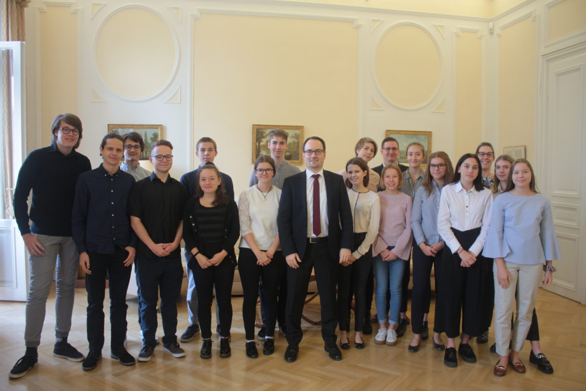 Die Schülerinnen und Schüler der Projektwoche «Auf den Spuren der Fürsten von Liechtenstein» werden noch bis zum 5. Oktober das Vermächtnis der liechtensteinischen Geschichte in Wien und Südmähren erkunden und unter anderem die beiden Liechtenstein-Palais in Wien und die als UNESCO-Weltkulturerbe geschützte Gartenanlage von Feldsberg und Eisgrub mit den beiden Liechtenstein-Schlössern besichtigen. Den traditionellen Beginn der Reise bildete erneut der Empfang an der Liechtensteinischen Botschaft in Wien. Dort informierte sich die Gruppe über die engen nachbarschaftlichen Beziehungen Liechtensteins zu Österreich und die Beziehungen zur Tschechischen Republik sowie die Mitarbeit Liechtensteins in der Organisation für Sicherheit und Zusammenarbeit in Europa (OSZE) und der UNO in Wien.