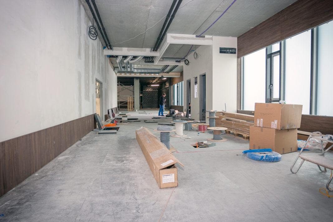 Bereits vor dem neuen Casino fällt eine grosse Änderung auf; der Eingang wird nicht mehr wie vorher in der Mitte sein, sondern es gibt zwei separate, seitliche Eingänge. Beim Betreten der Baustelle erstreckt sich eine riesige Halle. Ein Grossteil des Teppichs wurde bereits verlegt und die Spielautomaten geliefert. Nagelneu stehen sie da und warten auf ihren Einsatz. Die Bestückung ist gar nicht so einfach, wie man denken würde. Nicht nur, dass alles auf beinahe den Millimeter genau stimmen und stehen muss (Stromanschluss, Teppichausschnitt, Sockel und Podest, Bestuhlung), sondern eine für das Casino altbekannte Herausforderung stellt die statische Aufladung dar, welche bei Reibung (einfaches darüber laufen) durch den Teppich entsteht. Diese kann bei den Spielautomaten zu Kurzschlüssen führen. Doch die hiesigen Fachleute und die Techniker des Casinos machen das ja nicht zum ersten Mal.