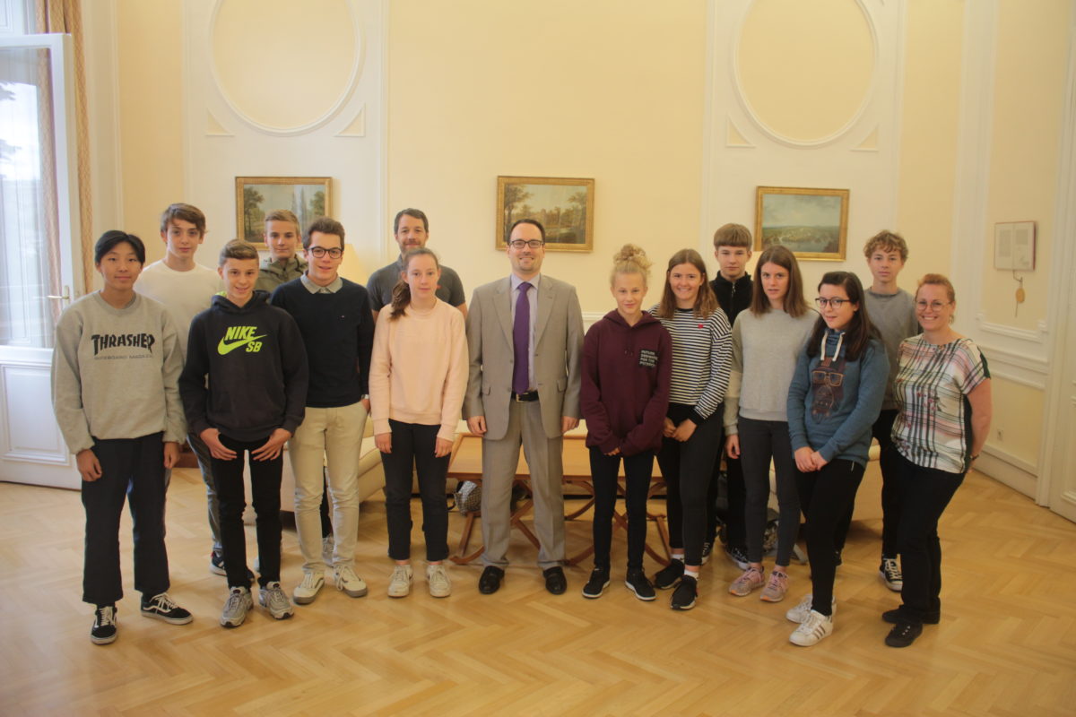 Auf dem Programm stand am 2. Oktober auch ein Besuch bei der Liechtensteinischen Botschaft, wo sich die Gruppe einen Eindruck von der Arbeit der diplomatischen Vertretung machen konnte. Insbesondere erhielten die Schülerinnen und Schüler einen Einblick in die engen nachbarschaftlichen Beziehungen Liechtensteins zu Österreich und in die Beziehungen zur Tschechischen Republik. Zudem informierten sie sich über Liechtensteins Mitarbeit in der Organisation für Sicherheit und Zusammenarbeit in Europa (OSZE) und in den in Wien ansässigen UNO-Organisationen.