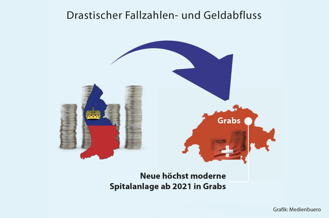 Der ungebremste Fallzahlen- sowie Geldabfluss aus Liechtenstein in Richtung St.Gallische Spitallandschaft nimmt weiterhin zu. Mit der neuen, höchst modernen Spitalanlage ab 2021 wird dies für Grabs einen noch grösseren Standort-Vorteil geben. Die volkswirtschaftliche Abwärtsspirale sinkt im freien Fall, wenn Liechtenstein nicht vor Grabs mit einer neuen, höchst modernen Spitalinfrastruktur einen Konkurrenz-Vorsprung bieten kann. Ein solches hochmodernes Spitalgebäude wäre im Liechtensteiner Unterland vorhanden.