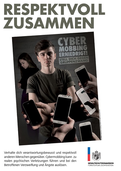 Bei Vorkommnissen rund um Cybermobbing stehen an den Weiterführenden Schulen die Schulsozialarbeit, im ausserschulischen Bereich der Kinder- und Jugendschutz im Amt für Soziale Dienste www.jugendschutz.li sowie die Fachgruppe Medienkompetenz www.medienkompetenz.li zur Verfügung.