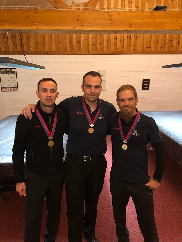 Michael Biedermann ist Landesmeister im 14.1 endlos. Die Silbermedaille holt sich Patrick Pomberger. Bronze holt sich Branko Kosic vor Fabian Schierscher.