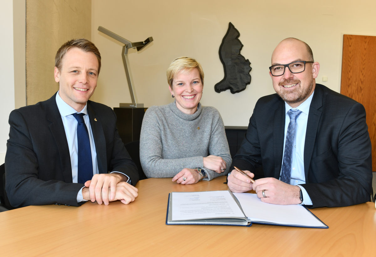 Regierungschef-Stellvertreter Daniel Risch und Isabel Fehr, Präsidentin des Liechtenstein Olympic Committee (LOC), sowie Beat Wachter, Geschäftsführer des LOC, unterzeichneten am 20. Dezember 2018 die neue Leistungsvereinbarung zwischen der Regierung und dem LOC für die Jahre 2019 bis 2022.