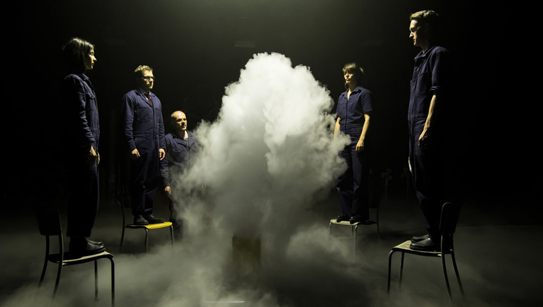 Die Geschäfte laufen schlecht in der kleinen Nebelmaschinenfabrik am Rand der Stadt. Die Auftragslage ist dürftig, niemand möchte mehr Maschinen kaufen, die im Kern nichts produzieren. Der Chef (gespielt von Samuel Streiff, bekannt als Reto Dörig in der SRF-Serie «Der Bestatter») und seine Mitarbeiter – sein Sohn (Sigurður Arent Jónsson), eine unbezahlte Praktikantin (Fhunyue Gao) sowie musikalisches Personal (Mathias Weibel an der Celesta und Mara Miribung am Cello) zur Nebelvertonung bei Verkaufspräsentationen – überlegen, wie man wohl die Zukunft überleben könnte. Um finanziell über die Runden zu kommen sind neue Ideen gefragt, neue Bilder, neue Lösungen. Die Belegschaft beginnt zu experimentieren: Wasserfälle, Planetenringe, leuchtende Nebelmeere und berühmte Skulpturen von Rodin und Giacometti, Böcklins Toteninsel mit Ruderboot, alles aus Nebel nachgebaut. Der gesamte Maschinenpark und sämtliches Nebelwissen aus 225 Jahren Firmengeschichte wird aufgefahren, vor den Augen der sporadisch vorbeischauenden Laufkundschaft entstehen Bilder von flüchtiger Opulenz und handwerklich praktischer Sinnfreiheit. Ob sich aber die Zukunft der Firma mit derart vergänglichen Kurzschönheiten retten lässt steht buchstäblich in den Wolken. Man wird es sehen – oder eben nicht.