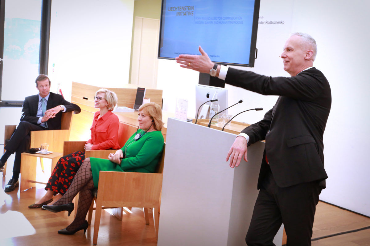 Die unter dem Namen „Liechtenstein Initiative“ lancierte Finanzsektorkommission soll einen Massnahmenkatalog für den globalen Finanzsektor zur Bekämpfung Moderner Sklaverei und Menschenhandel ausarbeiten. Im Zentrum der Arbeit der Kommission stehen die Aufdeckung illegaler Finanzflüsse und sowie verantwortungsvolle Investitions- und Kreditpraktiken. Die Kommission, die als Public-private-Partnership ausgestaltet ist, wird von der LGT Bank, dem Liechtensteinischen Bankenverband, der Hilti Familienstiftung, den beiden gemeinnützigen Stiftungen Medicor und Tarom sowie den Regierungen Liechtensteins und Australiens finanziell unterstützt.