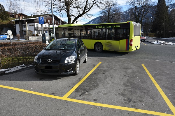 Gegen 11:30 Uhr fuhr eine Autolenkerin bei der Post in Bendern rückwärts aus einem Parkfeld. Dabei übersah sie einen Linienbus, der hinter ihr in die Hauptstrasse Im Schwibboga einfahren wollte. Durch die Kollision entstand an beiden Fahrzeugen Sachschaden.