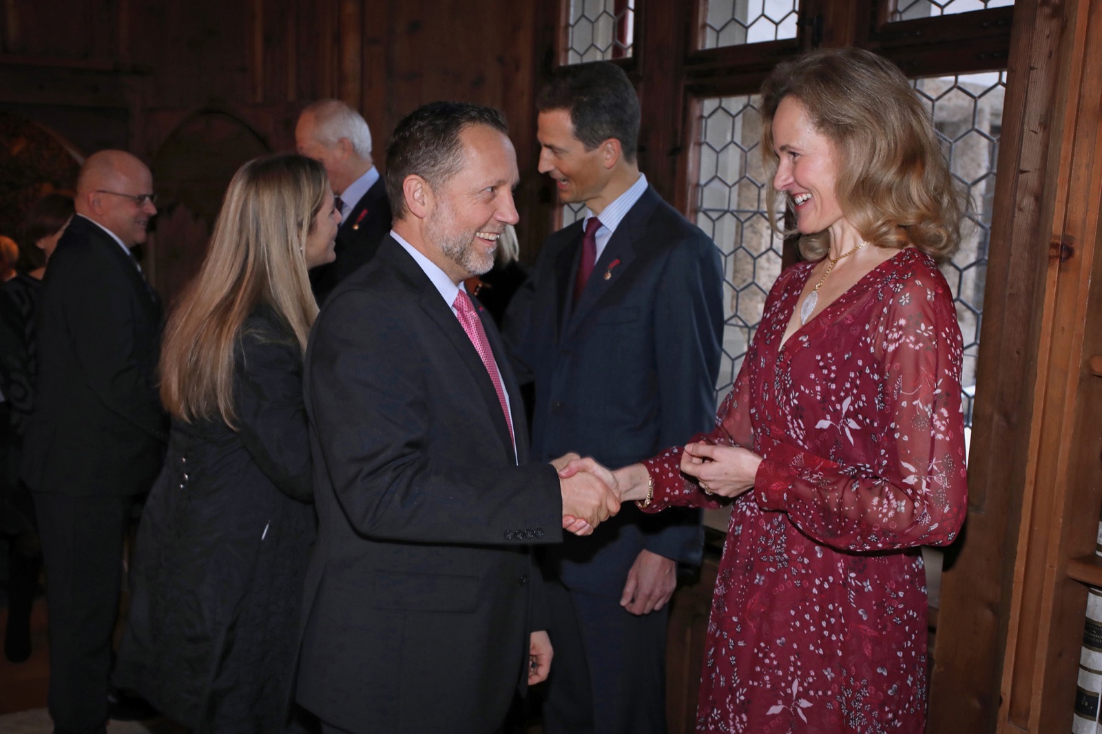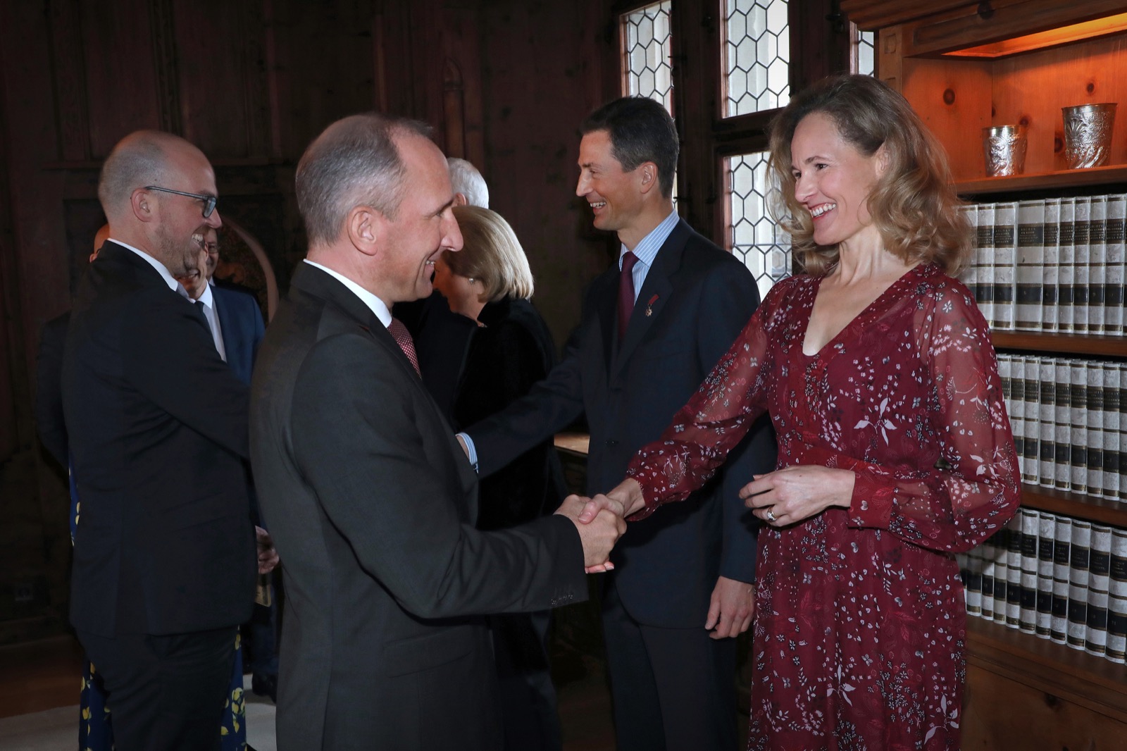 Die Fürstenfamilie lud am Donnerstag mehr als 500 Gäste zum traditionellen Neujahrsempfang auf Schloss Vaduz ein. Aus Sicherheitsgründen musste der Anlass in zwei Tranchen durchgeführt werden. Zum Empfang eingeladen hatten S.D. Fürst Hans Adam II. und I.D. Fürstin Marie sowie das Erbprinzenpaar Alois und Sophie von Liechtenstein.