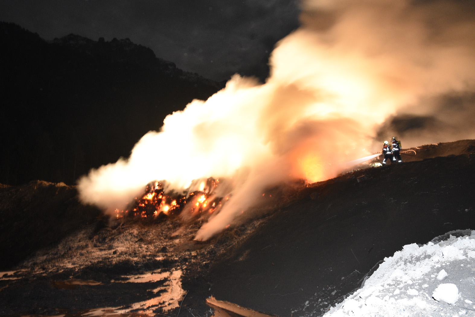 In der Nacht auf Mittwoch kam es in Schaan auf der Deponie ‘Ställa‘ zu einem Schwelbrand mit starker Rauchentwicklung. Gegen 00:30 Uhr entzündete sich aus bislang unbekannten Gründen ein grosser Stroh- und Grünabfallhaufen.