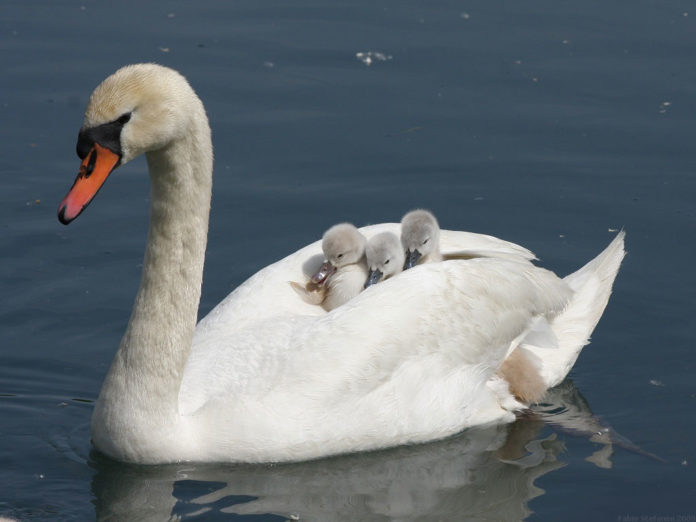 Anfang Mai ist dann das Ergebnis der Flitterwochen zu bestaunen: Klein und grau kämpfen sich die Küken durch die hellen, olivfarbenen Eierschalen und liegen erschöpft im Nest. Während Vater Schwan den noch wackeligen Erstgeborenen bereits Schwimmunterricht erteilt, brütet die Mutter geduldig die Nachzügler aus. Mehrere Tage können vergehen, ehe sich auch das letzte Vogelkind aus dem Ei bequemt.