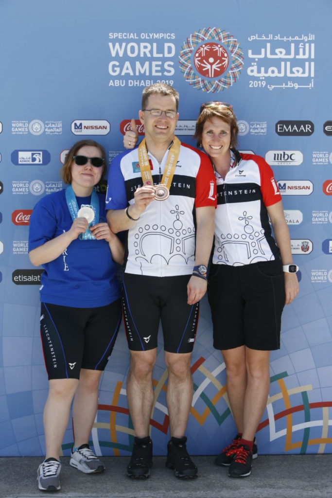 Special Olympics: Die Tennisspieler haben am Montag in Abu Dhabi den Medaillensatz für Liechtenstein komplettiert. Ausserdem holte Matthias Mislik über 25km Rad Bronze. Die Schwimmer hatten frei.