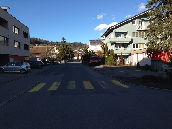 Die Strassenraumgestaltung sieht ein ca. 6 Meter breite Fahrbahn und ein 2 Meter breites Trottoir vor. Zur Verkehrsberuhigung und Aufwertung des Strassenbildes sollen an einigen Stellen Bäume am Fahrbahnrand gepflanzt werden