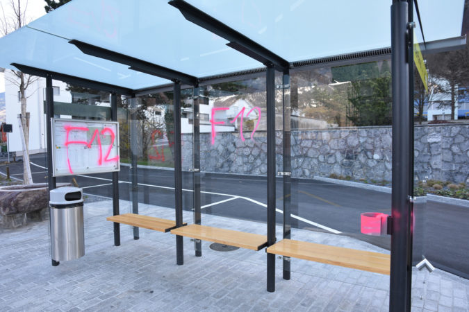In Balzers kam es am Wochenende zu einer Sachbeschädigung. Eine unbekannte Täterschaft besprayte im Zeitraum von Samstagabend, 16.03.19 bis Sonntagmorgen, 17.03.2019 diverse Fassaden, ein Wartehäuschen der Bushaltestelle ‚alter Pfarrhof‘ sowie ein Fahrzeug mit pinker Farbe. Es entstand Sachschaden in noch unbekannter Höhe.