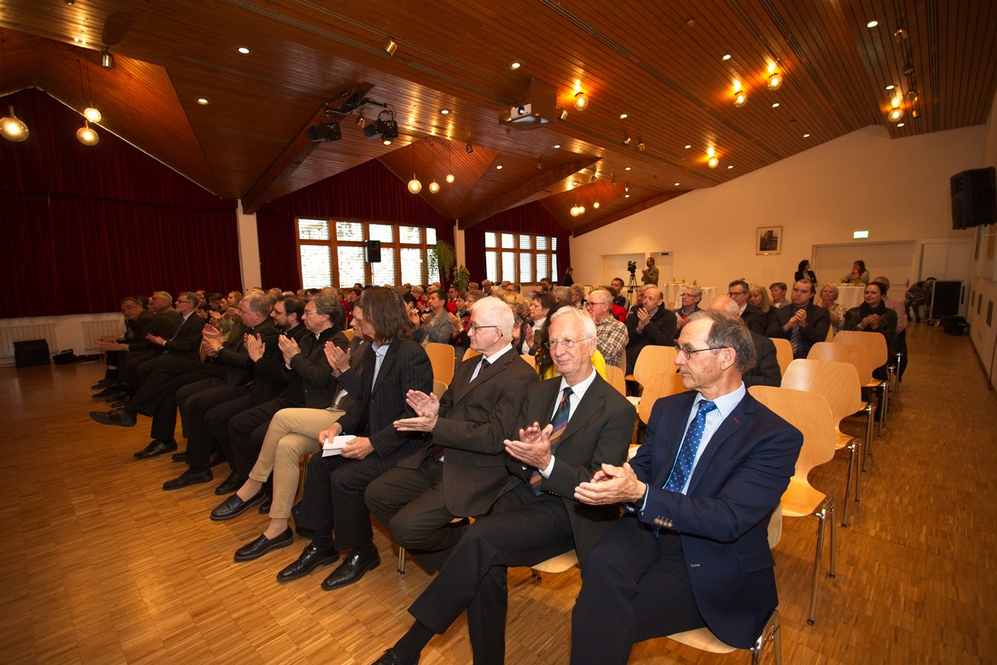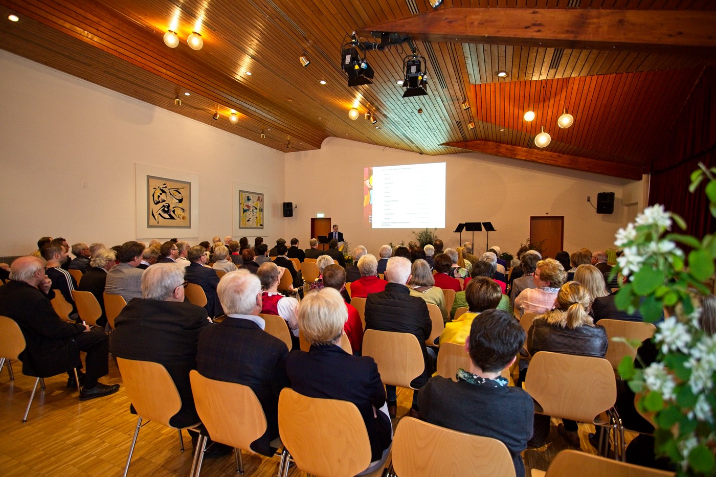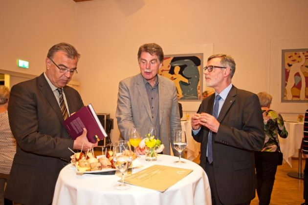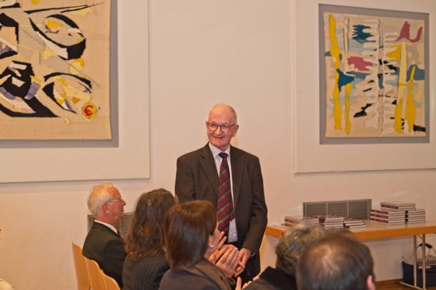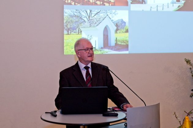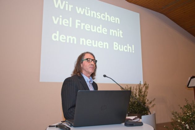 Vom Autorenteam ergriff Dr. Geiger nach der herzlichen Begrüssung von Jacqueline Vogt, der Geschäftsführerin der Hand in Hand Anstalt, das Wort. Er stellte das Buch vor. Es lade ein zum Lesen, Schauen, vor Ort besichtigen. Es sei aber auch ein schönes, gehaltvolles Geschenk. Es werden alle Kirchen und Kapellen in Liechtenstein beschrieben, d.h. die Historikerin Dr. Cornelia Herrmann hat diejenigen von Balzers, Schaan, Planken, Eschen/Nendeln, Schellenberg und Ruggell beschrieben; Peter Geiger diejenigen von Triesen, Gamprin-Bendern, Mauren-Schaanwald und des Klosters Schellenberg, Klaus Biedermann diejenigen von Vaduz und Josef Eberle die Kirchen und Kapellen im Berggebiet. Zudem stammen die herrlichen Bilder aus seiner Hand.