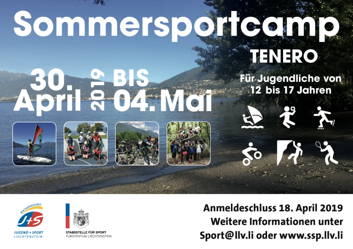 Das Lager findet vom 30. April bis 4. Mai 2019 statt und wird von der Stabsstelle für Sport organisiert. Ein kompetentes, von Jugend und Sport (J+S) ausgebildetes Leiterteam begleitet die Jugendlichen durch fünf sehr abwechslungsreiche Tage. Dabei stehen der Spass, die Gemeinschaft und der Sport ganz klar im Vordergrund. Dank der Liechtensteinischen Sportförderung können wir das Sommersportcamp sehr kostengünstig anbieten.