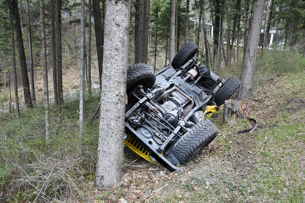 Dabei verlor er die Kontrolle über seinen Geländewagen, fuhr über den rechten Strassenrand und kollidierte mit der Beifahrertüre gegen einen Baumstamm worauf das Fahrzeug auf die rechte Seite kippte und auf dem Überrollbügel zum Stillstand kam. In der Folge wurde die Feuerwehr Schaan aufgeboten um das bereits ausgelaufene Benzin- und Ölgemisch zu beseitigen und weiteres Auslaufen von Flüssigkeiten aus dem Fahrzeug zu verhindern. Eine Person wurde dabei verletzt. Am Fahrzeug entstand hoher Sachschaden.
