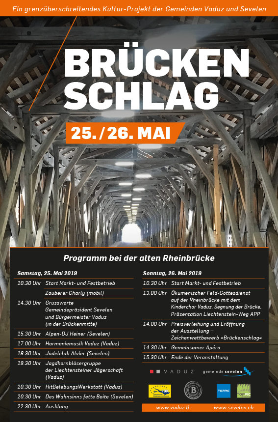 «Brückenschlag» ist ein buntes, fröhliches Fest mit Spiel und Spass. Es wirken Musik- und Gesangsvereine aus Sevelen und Vaduz mit. Weitere Vereine und Unternehmer bieten kulturelle oder kulinarische Köstlichkeiten an: Glace, Wein, Schnaps, Gemüse, Kräuter etc., etc. …