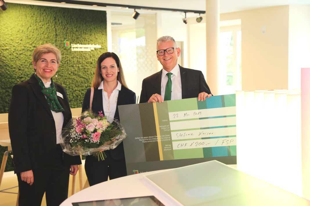 Der zur Wiedereröffnung der Geschäftsstelle Balzers im April durchgeführte Wettbewerb hat nun eine glückliche Gewinnerin gefunden. Stefanie Kaiser aus Vaduz freut sich über den Gewinn eines Fondssparplans im Wert von 1’200 Franken. Wird sie am Ende gar zur Mehrfachgewinnerin?
