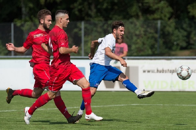 Michael Bärtsch (USV/beim Schuss) wurde Schweizer Torschützenkönig der 1. Liga.