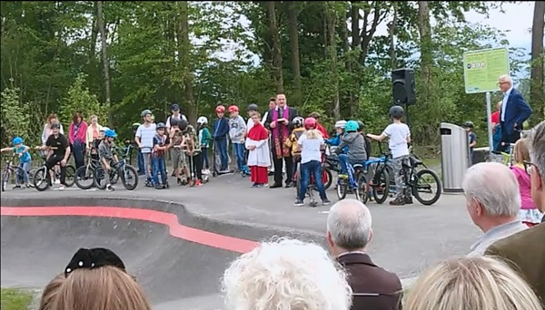 Am Sonntag 26.05.2019 wurde anlässlich der 300-Jahrfeier und der Einweihung des Liechtenstein-Weges auch der neue Pumptrack in Ruggell feierlich eröffnet und vom Ruggeller Gemeindepfarrer eingesegnet. Der Herr Pfarrer liess es sich nicht nehmen, selber ein paar Runden auf der Anlage zu drehen.