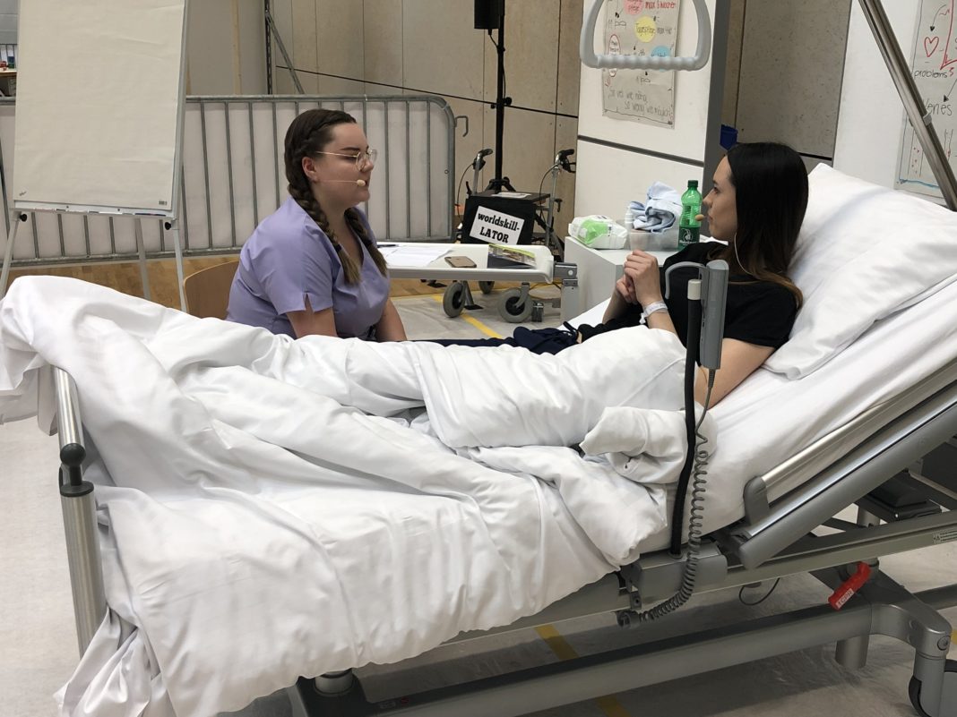 Katharina Lorenz-Klemm erläutert, welche Aufgaben «ihre» Kandidatin erwarten werden: «Lena wird bei den WorldSkills an jedem der vier Wettbewerbstage ein neues Setting antreffen, nämlich Spital, Langzeitpflege, Tagespflege und die Pflege zu Hause. Dort werden an Simulationspatienten verschiedene Kompetenzen geprüft. Dazu gehören Arbeitsorganisation und -management, Kommunikation und zwischenmenschliche Fähigkeiten, Problemlösung, Innovation und Kreativität, Bedarfsermittlung und Planung der Patientenbetreuung sowie Evaluation.»