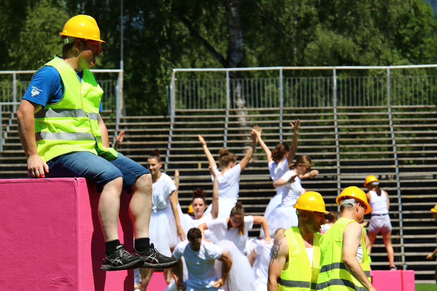 Das Stadion Birkenwiese wird mit Stehplatztribünen auf ein Fassungsvermögen von 25.000 Besucherplätzen (20.000 Teilnehmer und etwa 5000 Zuseher) erweitert, damit möglichst viele Besucher/Innen die Begrüßungsreden, das Hissen der FIG-, der Weltgymnaestrada- und der Österreich-Fahnen und die große Eröffnungsshow unter dem Motto Show your Colours!mit Aktiven aus dem gesamten Bodenseeraum genießen können.